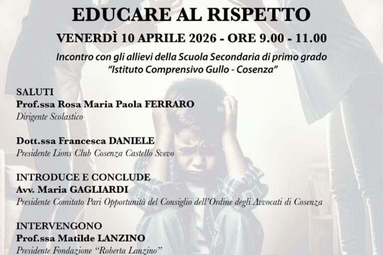 10/04/2026. Seminario “Prevenire la violenza, educare al rispetto” Il Lions…