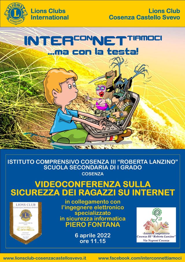 06/04/2022 – “INTERconNETtiamoci… ma con la testa” Oggi il service “INTERconNETtiamoci… ma con la testa” ha visto protagonisti i ragazzi dell’Istituto Comprensivo Cosenza III “Roberta Lanzino” – Scuola Secondaria di…
