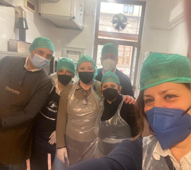 05/03/2022 – La cucina di “Casa Nostra” Oggi la squadra era composta da sei volontari per la preparazione di 40 pasti, di cui 38 da asporto e 2 da servire…
