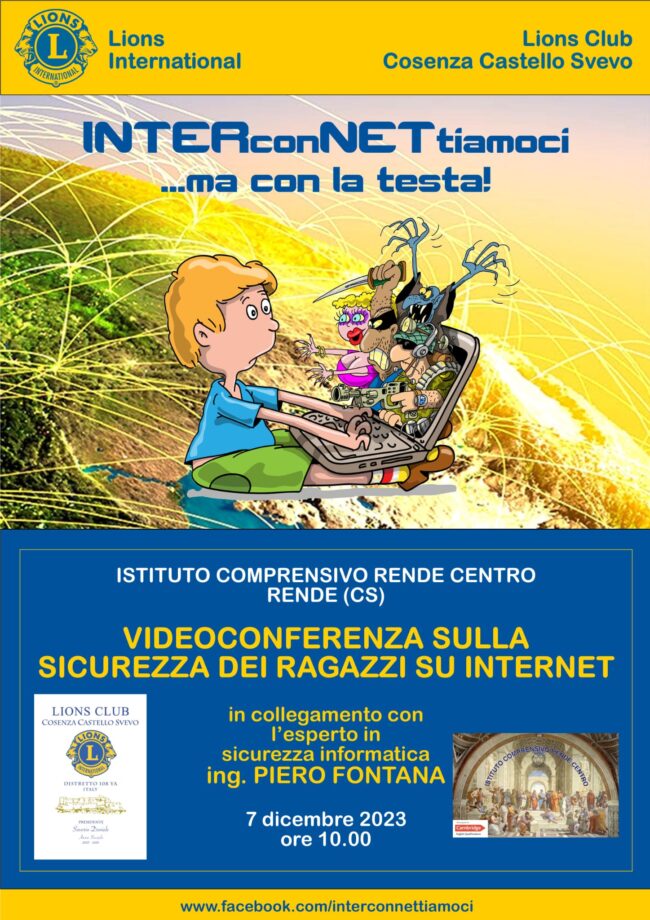 07 dicembre 2023_ “INTERconNETtiamoci… ma con la testa” Il Lions Club Cosenza Castello Svevo ha organizzato per giovedì 7 dicembre una videoconferenza in collegamento su piattaforma Google Meet, con la…