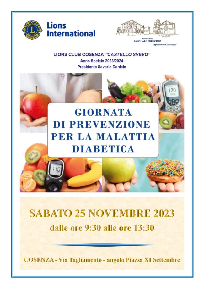 25/11/2023. Giornata di prevenzione per la malattia diabetica Si stima che circa 463 milioni di adulti in tutto il mondo convivano con il diabete e che la diffusione di questa…