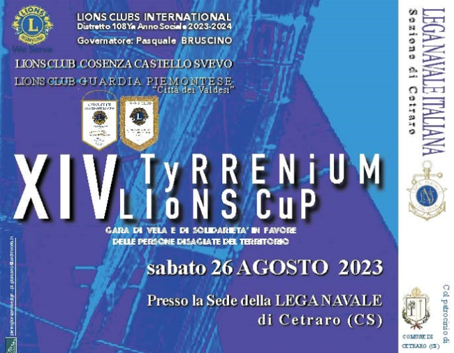 26/08/2023. XIV EDIZIONE DELLA “TYRRENIUM LIONS CUP” – GARA DI VELA E DI SOLIDARIETÀ La tradizionale regata organizzata dai Lions Club di Cosenza Castello Svevo e Guardia Piemontese Città…