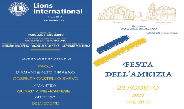 23/08/2023 – Diamante – Festa dell’Amicizia Festa dell’Amicizia sponsorizzata dai Lions Club di Paola, Diamante Alto Tirreno, Cosenza Castello Svevo, Amantea, Guardia Piemontese, Arberia, Belvedere. Tutti i Club Sponsor sono…