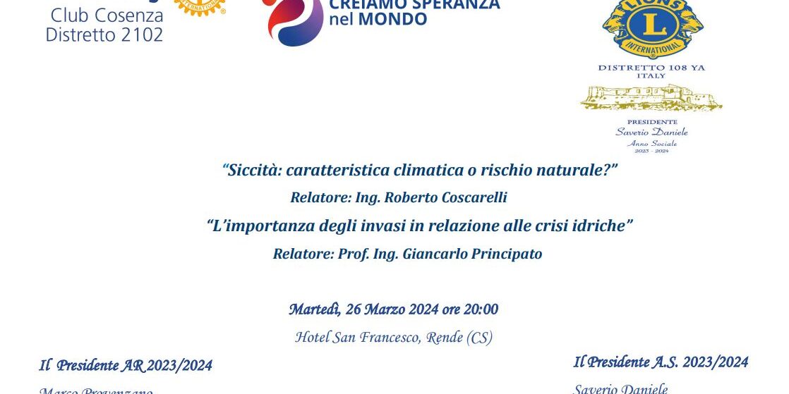 E’ prevista per il prossimo 26 marzo alle ore 20:00 presso l’Hotel San Francesco in Rende, una importante Conferenza sull’ambiente, dove saranno affrontati da esperti in materia, argomenti e problematiche diventate, purtroppo, di stringente attualità.
