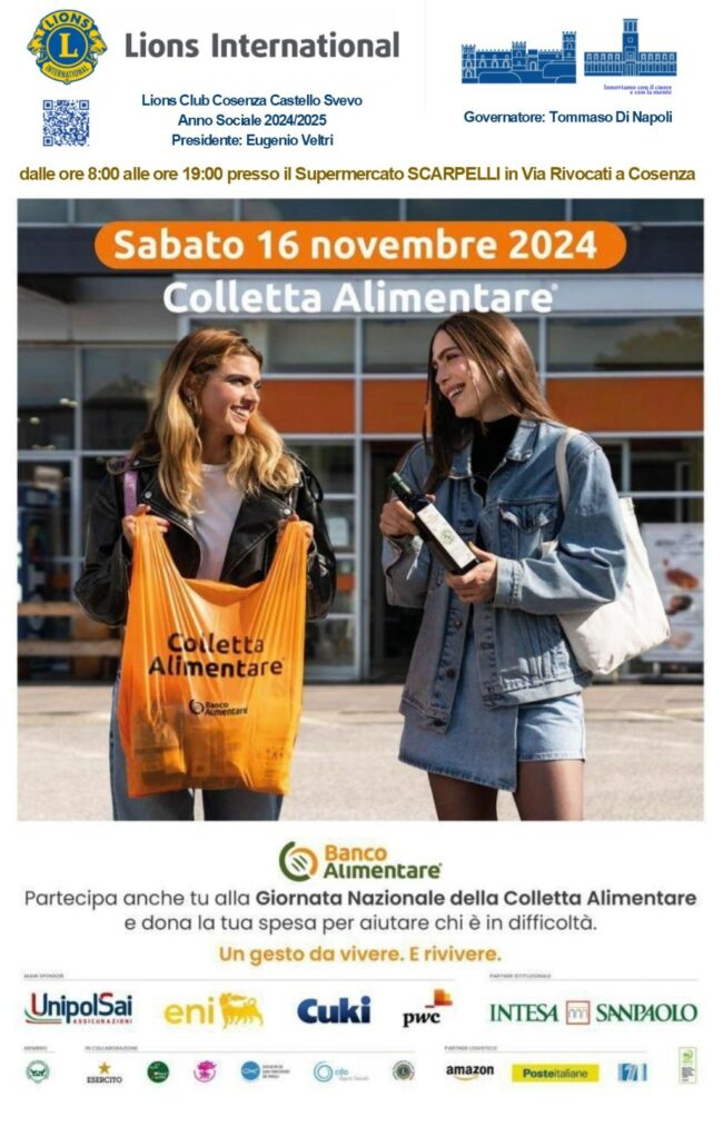 16/11/2024. ASSIEME AL BANCO ALIMENTARE PER LA GIORNATA NAZIONALE DELLA COLLETTA ALIMENTARE PRESSO IL SUPERMERCARTO SCARPELLI A COSENZA Il 16 novembre 2024 in tutta Italia, con il supporto logistico del…