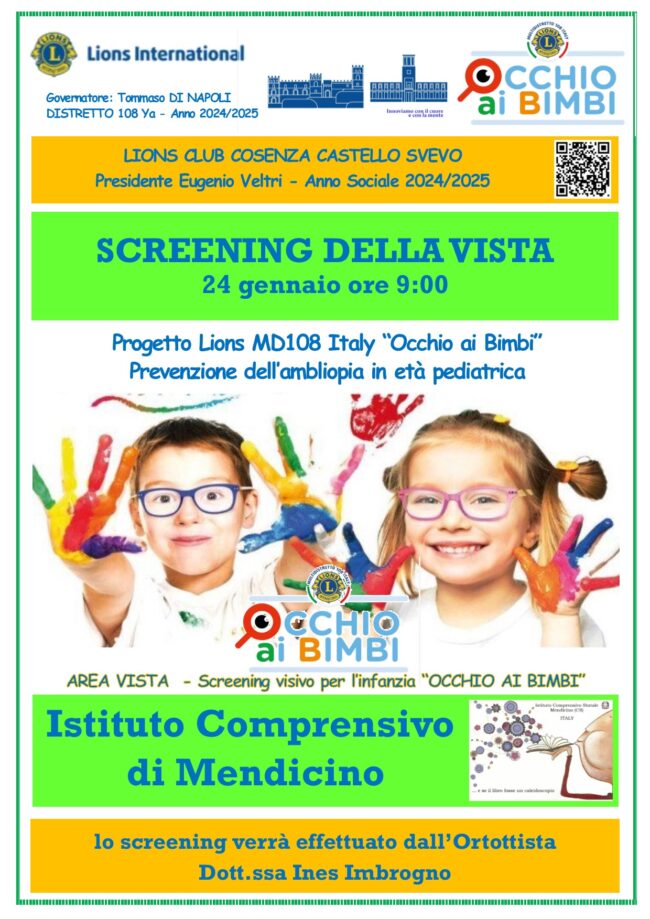 24 gennaio 2025. SCREENING DELLA VISTA. Progetto Lions MD108 “OCCHIO AI BIMBI”. Prevenzione dell’ambliopia in età pediatrica. AREA VISTA – Screening Visivo per l’infanzia “OCCHIO AI BIMBI” Si è’ svolta…