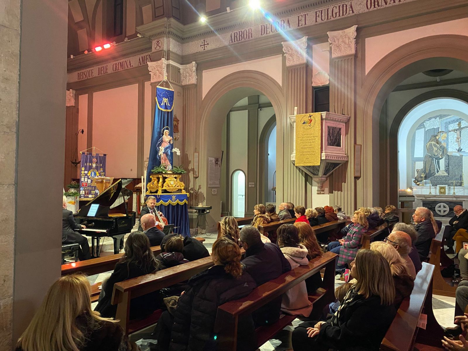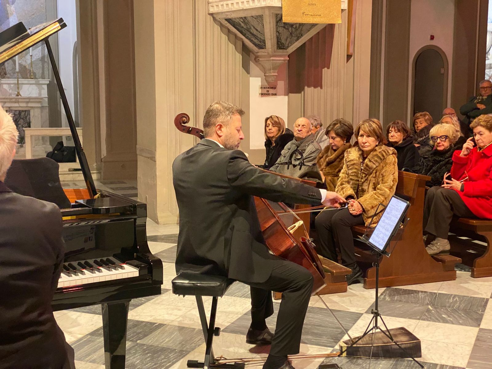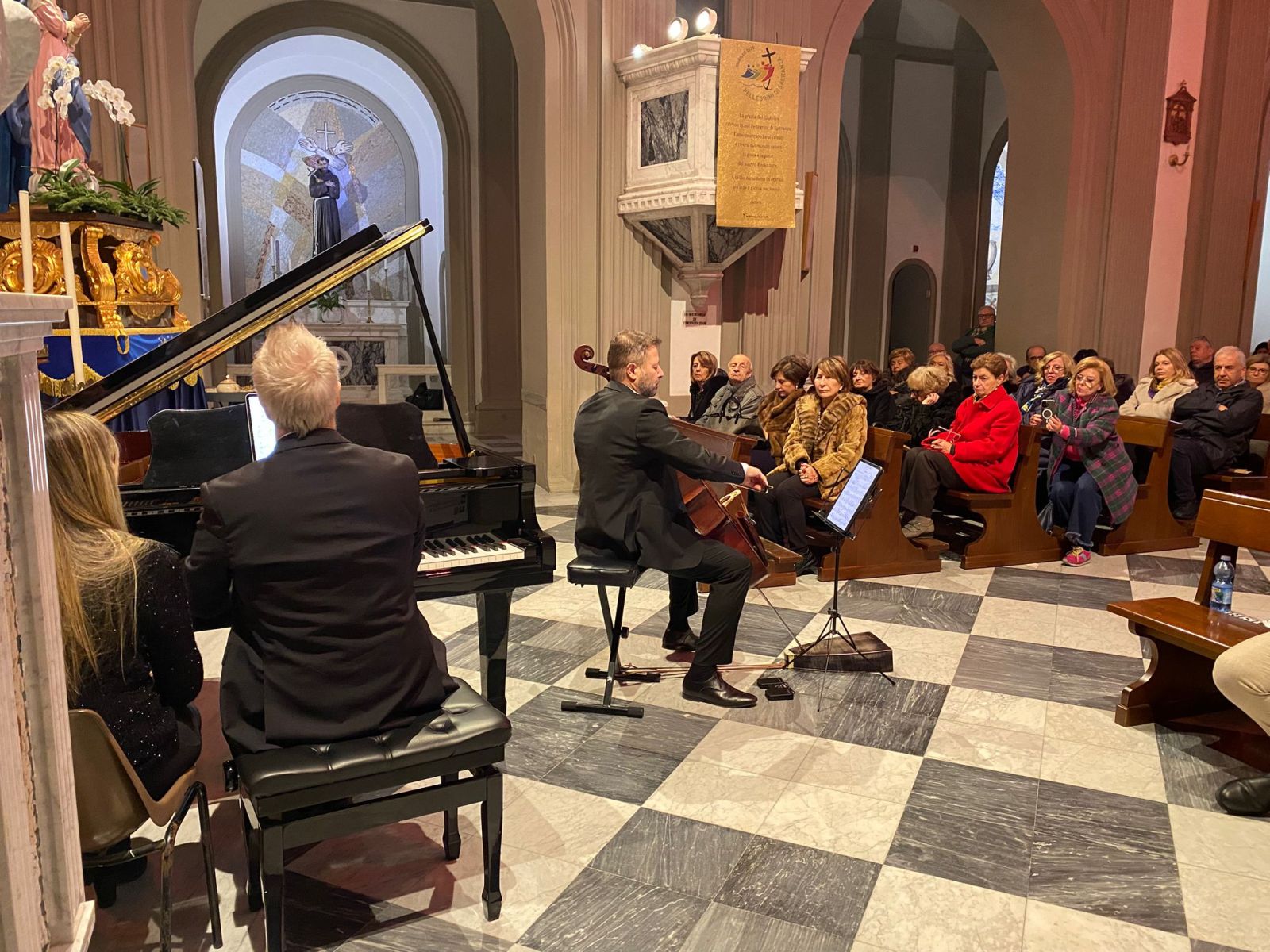 Il programma ha proposto pagine celebri del repertorio classico, con musiche di Shostakovich, Schumann, Fauré e Rossini, interpretate con profonda espressività e raffinata sensibilità. In chiusura, un emozionante medley natalizio composto per l’occasione dal Maestro Venturi ha intrecciato alcune delle più amate melodie della tradizione.