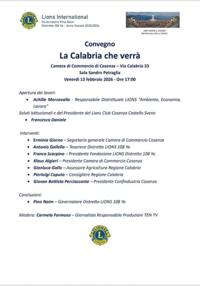 Sabato 13 febbraio 2026, unitamente ad altri Lions Club della Calabria, si sta organizzando presso la Camera di Commercio di Cosenza, su impulso del socio Achille Morcavallo, Responsabile Distrettuale per…