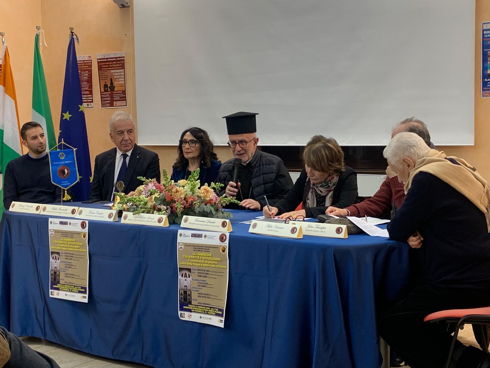 Argomento di discussione e approfondimento “GLI ARBȄRESHȄ TRA IDENTITA’ E INTEGRAZIONE: il cammino di un popolo unito dalla lingua e dalla fede”. Ideatore e padrone di casa il Papàs Pietro Lanza che da sempre sostiene il processo di dialogo ecumenico e l’integrazione fra le comunità dell’Eparchia di Lungro e le Diocesi del Territorio.