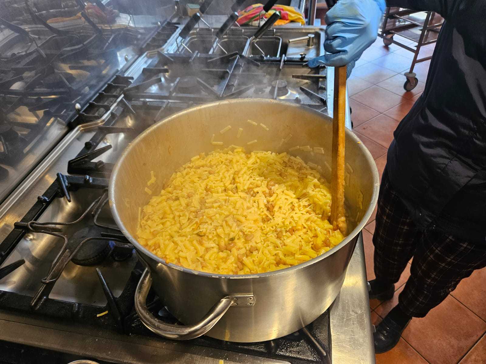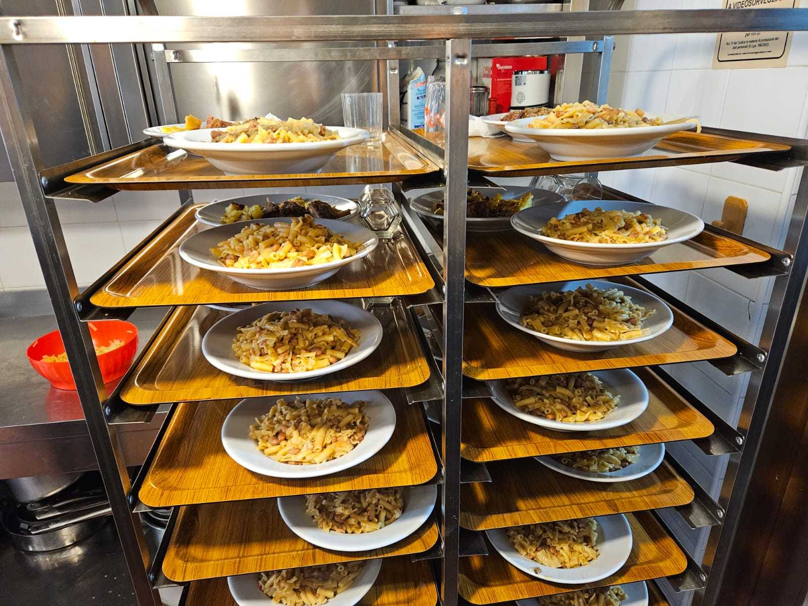 Il menù, particolarmente curato e apprezzato dagli ospiti, è stato così composto: pasta e fagioli, omelette, polpettone al formaggio, patate al forno e bibite.