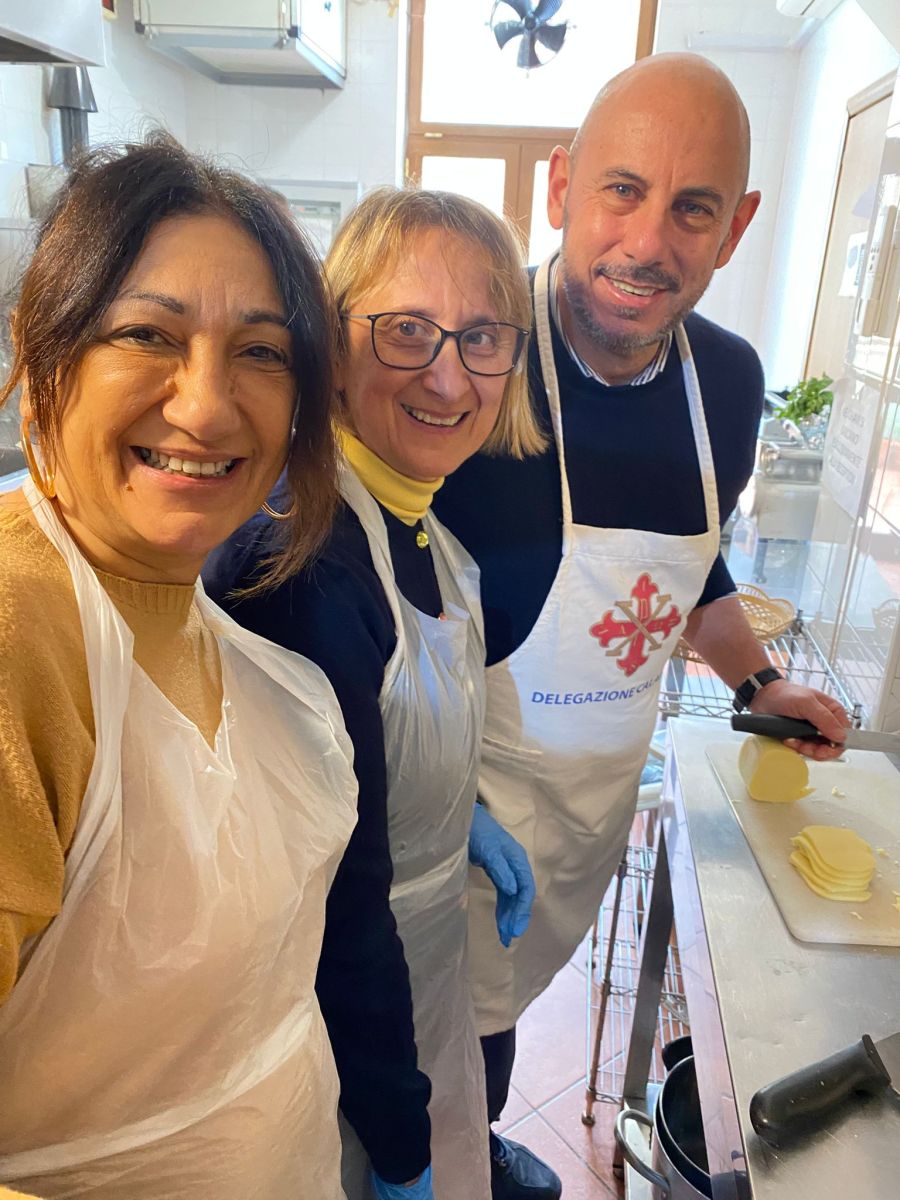 Durante la mattinata i volontari — Donata, Roberta, Elisabetta, Achille, Gaetano, Magda (soci del Club) e Apollonio, quest’ultimo in rappresentanza del Sacro Militare Ordine Costantiniano di San Giorgio — hanno lavorato insieme per preparare 29 pasti, sia da consumare in sede che da asporto.