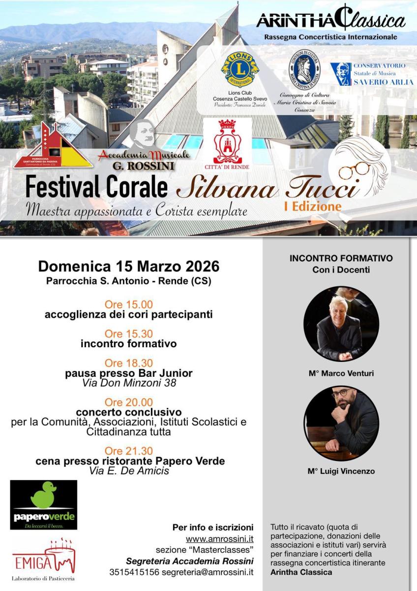 15/03/2026. I^ FESTIVAL CORALE Silvana Tucci. Nel ricordo di Silvana Tucci, con la musica nel cuore