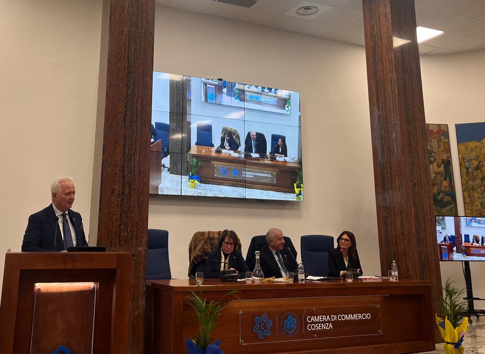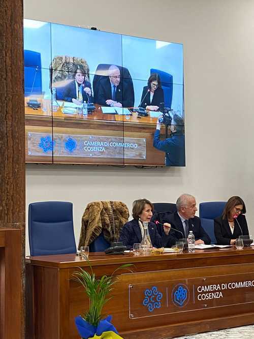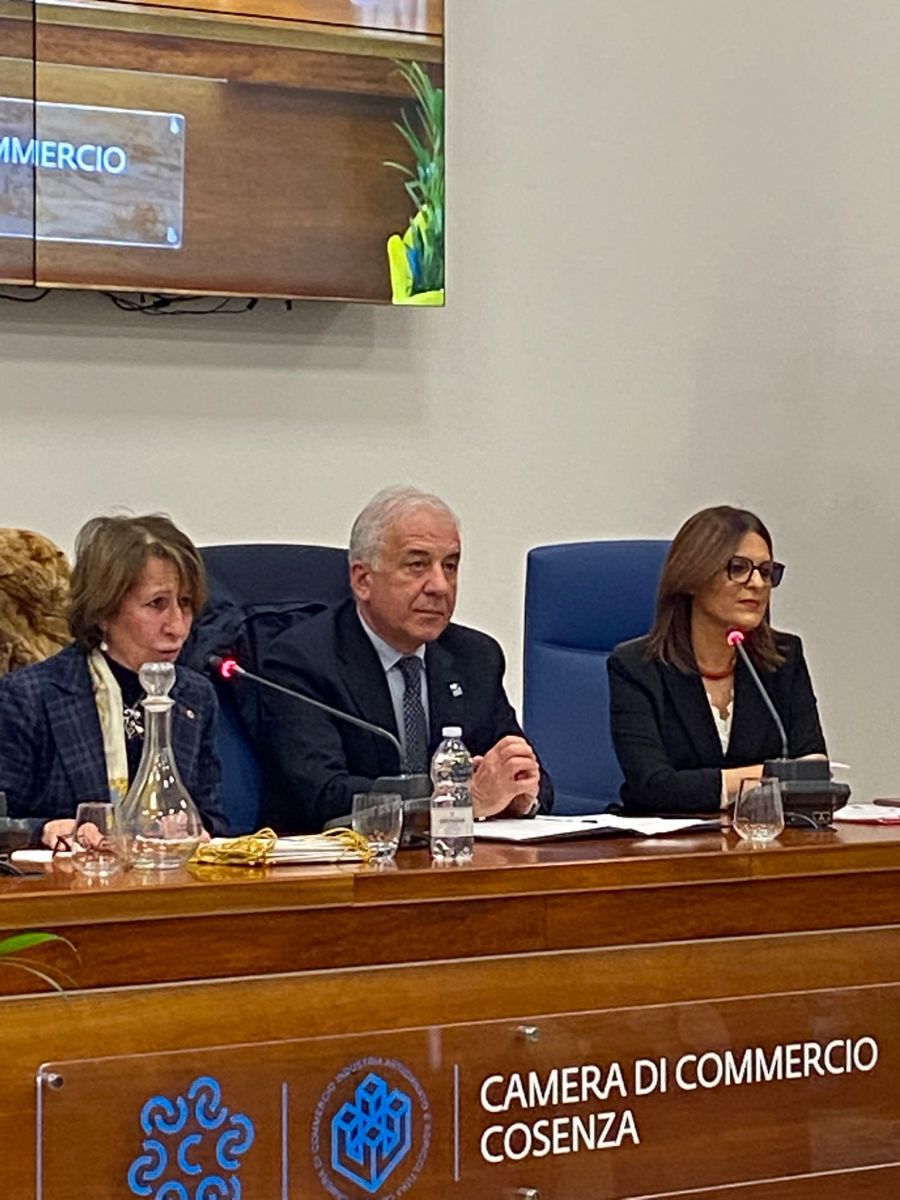 Ad aprire i lavori sono stati i saluti istituzionali del Presidente della Camera di Commercio di Cosenza, Klaus Algieri, che ha evidenziato la necessità di una visione condivisa per lo sviluppo del territorio, sottolineando il valore della sinergia tra economia, cultura e responsabilità collettiva, nonché il ruolo centrale delle imprese e dei giovani per il futuro della regione. A seguire i saluti di Giovanna Oliverio Vicepresidente Confcommercio e di Giampaolo Latella, Direttore Confindustria Cosenza.