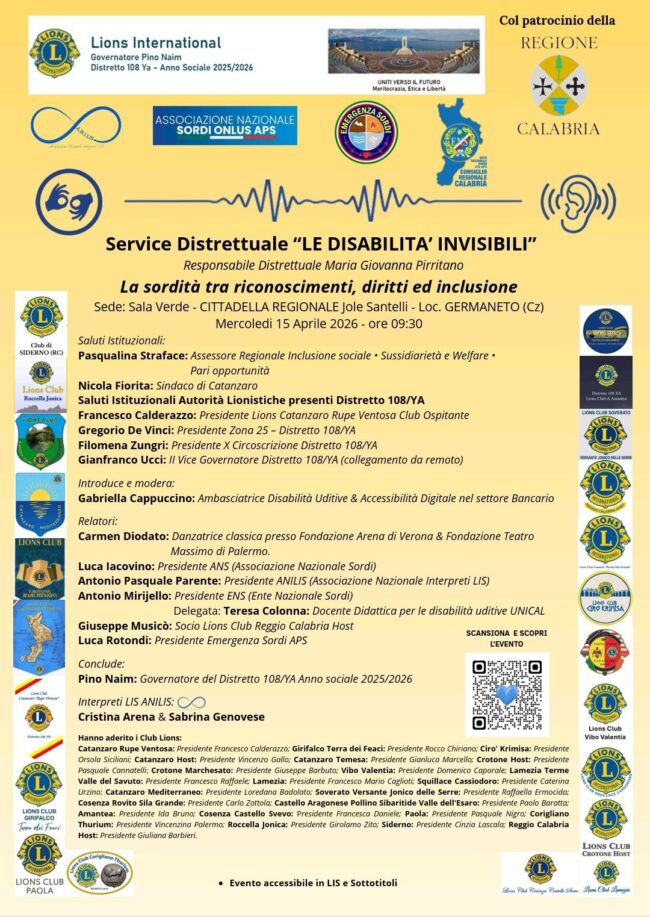 15/04/2026. Convegno “LE DISABILITÀ INVISIBILI” – Service Distrettuale Si è svolto presso la Sala Verde della Cittadella Regionale di Germaneto (CZ), il convegno “LE DISABILITÀ INVISIBILI”, service distrettuale dedicato ai…