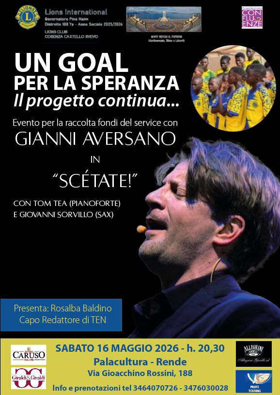 Si terrà il prossimo 16 maggio dalle ore 20:30 presso il Palacultura di Rende l’evento    “UN GOL PER LA SPERANZA. Il Progetto continua…” per la raccolta fondi in favore…