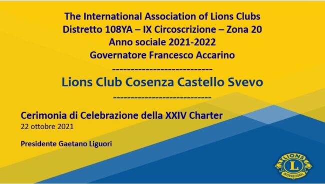 22/10/2021. 24^ Charter, del Lions Club Cosenza Castello Svevo Lo scorso venerdì 22 ottobre ha ufficialmente avuto inizio l’anno sociale 2021/2022, con la celebrazione della 24^ Charter, del Lions Club…