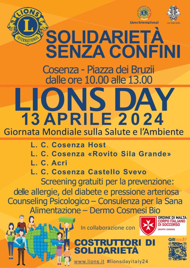 E’ prevista per il prossimo 13 aprile dalle ore 10:00 presso la Piazza dei Bruzi in Cosenza la giornata del LIONS DAY. Il nostro club insieme agli club di Cosenza…