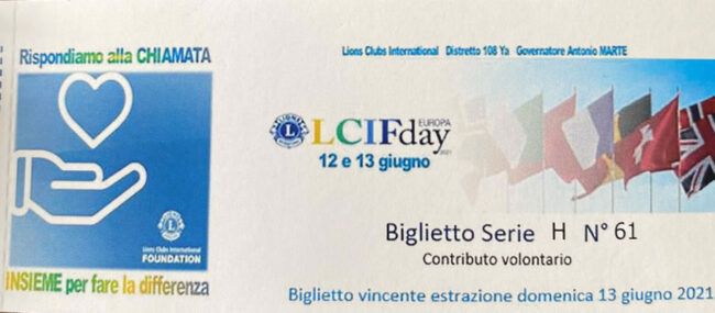 12/06/2021. RACCOLTA FONDI PRO LCIF In occasione dell’LCIF Day, il Distretto 108YA ha presentato una raccolta fondi pro LCIF attraverso la vendita di biglietti legati all’estrazione di premi, tra i…