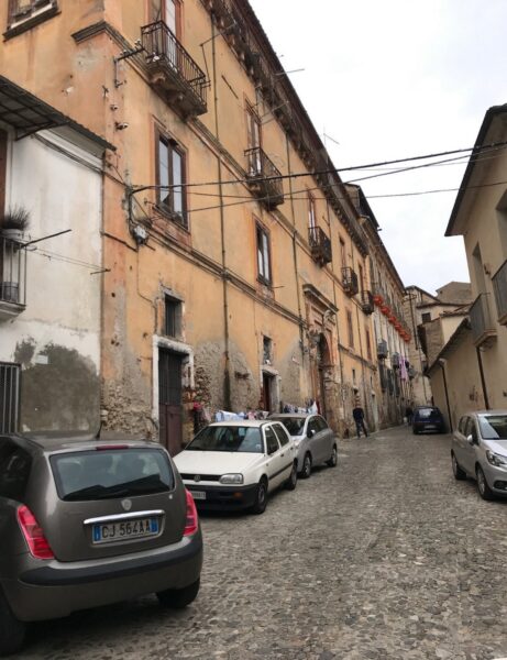 La dimora più antica è databile a metà del 500, in stile aragonese come l’imponente portale coronato dallo stemma della casata. I tufi consumati, i solchi dell’umidità nelle paraste, il legno annerito e vandalizzato fanno ancora trasparire il grande fasto che doveva abbracciare anticamente il palazzo.