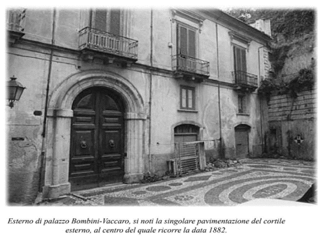 Palazzo Bombini – Vaccaro nasce come ampliamento del nucleo originario dello stabile e venne abbellito, con ogni probabilità, in occasione del matrimonio fra Virginia Orlandi e Pasquale Bombini, infatti si apprende da antichi documenti, che a seguito di tale matrimonio la fabbrica originaria del palazzo venne ampliata e dotata di cortile esterno, giardino, scuderia e androne.